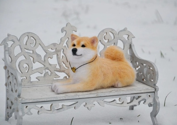 Сиба-ину из войлока. Сухое валяние.