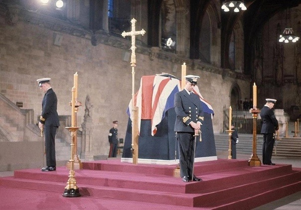 1965 год. Траурный карал у гроба Черчилля